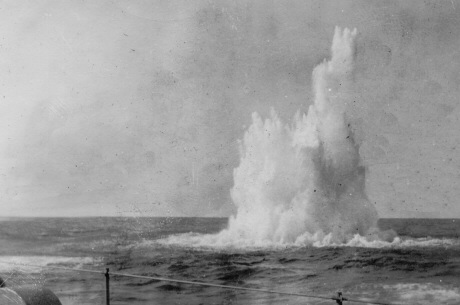Depth charge dropped by the USS Davenport on a suspected German submarine; date: 19 April 1945; location: about 250 miles ESE of New York City (photo courtesy of Don F. Roban)